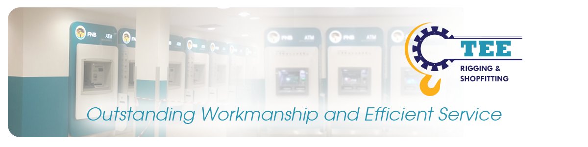 Tee Rigging and Shopfitting, is a close corporation registered in 2005, with sole member Mr, Moonsamy Govender. We offer turnkey so solutions, from Collection, transportation, building, installation, shopfitting, cleaning and prepping for live commissioning by our clients. We are currently a service provider to FNB, since 2009. Our experience, strong management team and highly qualified staff complement, places us in a unique position, to service our clients with ease, efficiency and at an affordable rate.